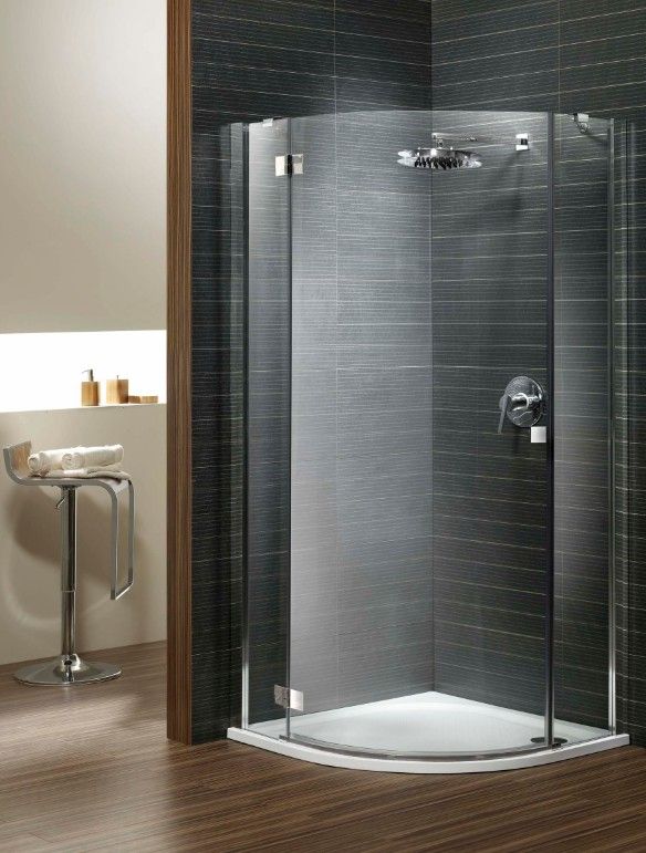 Полукруглая кабина с одностворчатой распашной дверью и узкими боковыми стенками.