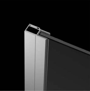 - Регулировка из-за отклонений от вертикали. Не все стены идеально ровные и вертикальные. Поэтому стандартный пристенный профиль состоит из двух частей: П-образный профиль (тот который крепится к стене) наклоняется к стене и второй профиль (в котором запрессовано стекло). Стандартный пристенный профиль регулируется в пределах 1 сантимерта (в зависимости от коллекции). Если это не хватает тогда необходимо заменить П-образный профиль на расширительный профиль.