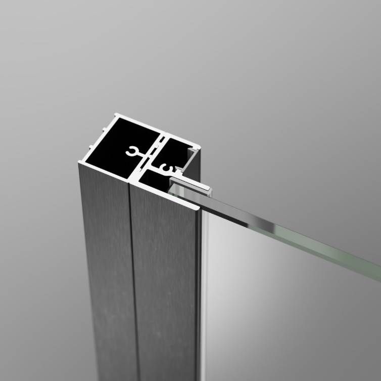- Регулировка из-за отклонений от вертикали. Не все стены идеально ровные и вертикальные. Поэтому стандартный пристенный профиль состоит из двух частей: П-образный профиль (тот который крепится к стене) наклоняется к стене и второй профиль (в котором запрессовано стекло). Стандартный пристенный профиль регулируется в пределах 1 сантимерта (в зависимости от коллекции). Если это не хватает тогда необходимо заменить П-образный профиль на расширительный профиль.