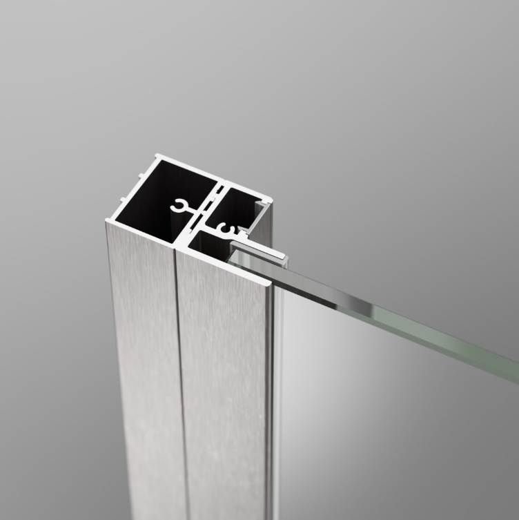 - Регулировка из-за отклонений от вертикали. Не все стены идеально ровные и вертикальные. Поэтому стандартный пристенный профиль состоит из двух частей: П-образный профиль (тот который крепится к стене) наклоняется к стене и второй профиль (в котором запрессовано стекло). Стандартный пристенный профиль регулируется в пределах 1 сантимерта (в зависимости от коллекции). Если это не хватает тогда необходимо заменить П-образный профиль на расширительный профиль.