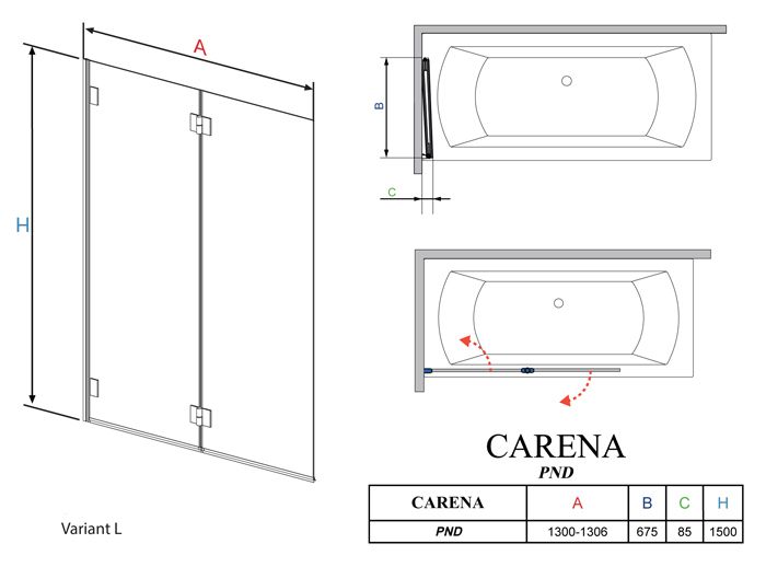 Коллекция Carena отличается от других коллекций во первых тем, что створка двери открывается только внутрь душевой зоны, во вотрых дверная ручка настолько большая что выполняет роль держателя для полотенец.