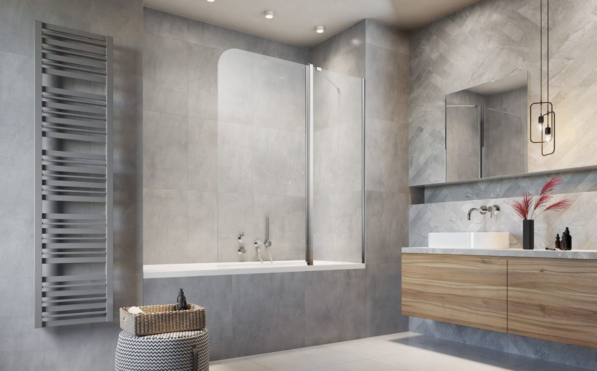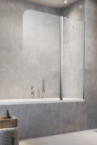 Шторка для ванны Eos II PND состоит из двух частей. Неподвижное стекло ближе стены. Подвижное стекло открывается внутрь и наружу.