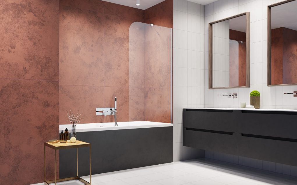 Стекло крепится к стене с помощью пристенных профилей (с регулировкой).
