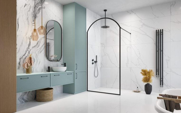 В обустройстве ванных комнат наблюдается новый тренд, а именно арки над проходами а также закругленные формы зеркал и другойсантежники, в том числе и душевых перегородок. Перегородка VOLTA Black Frame идеально сочетается с элементами интерьера, т. е. черными батареями, радиатором, мебельными ручками или зеркалом. Линии, характерные для стекла Frame, покрашены керамической краской, устойчивой к истиранию и ультрафиолетовому излучению. Черный профиль стабилизатора, в свою очередь, обеспечивает стабильность и безопасность и при этом очень эстетичен.